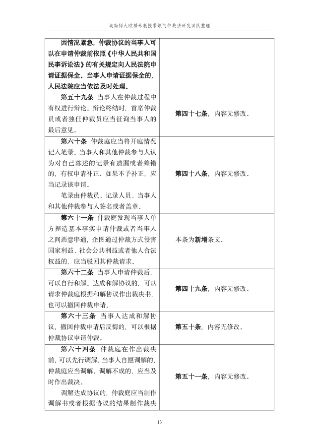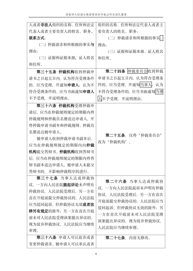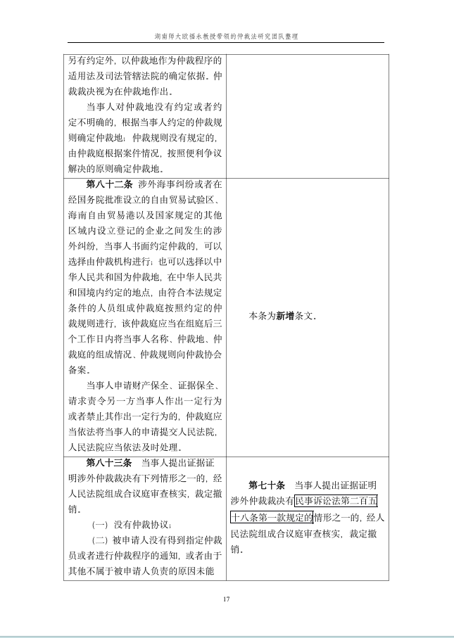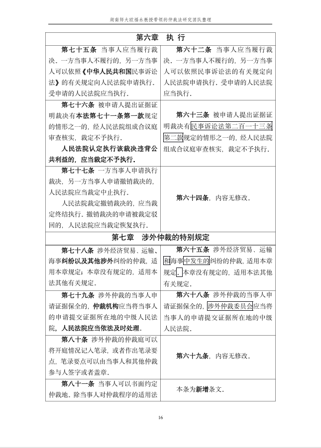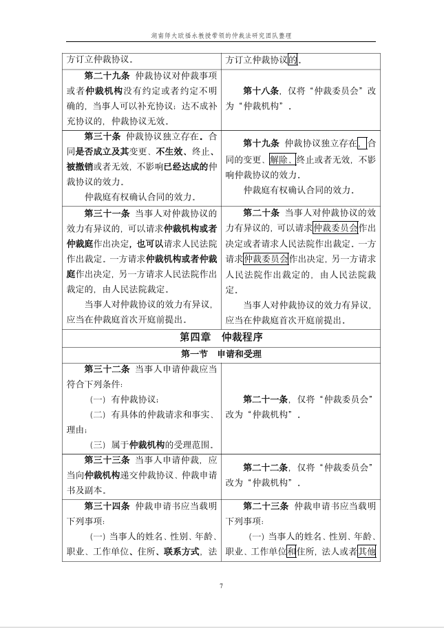 仲裁动态 您的位置:首页>> 仲裁动态>> 《仲裁法》修订条文对照表 >> 正文